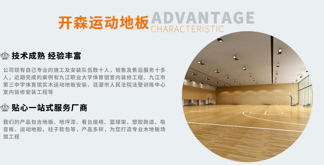 九江開森地板有限公司位于美麗的江西省九江市。地板原材料采自于吉林,黑龍江等長白山地區(qū)自家承包林場的優(yōu)質(zhì)木料,主,輔龍骨采用美國進(jìn)口花旗松為原料。開森地板擁有雄厚的科技和研發(fā)實力,匯集了一批優(yōu)異工程師和專業(yè)的安裝團(tuán)隊,引進(jìn)的進(jìn)口地板安裝設(shè)備。本公司對外承攬大、中、小體育場館的運動木地板安裝工程。做到質(zhì)量保證、價格合理。在行業(yè)內(nèi)擁有較高的知名度,實力迎合市場!